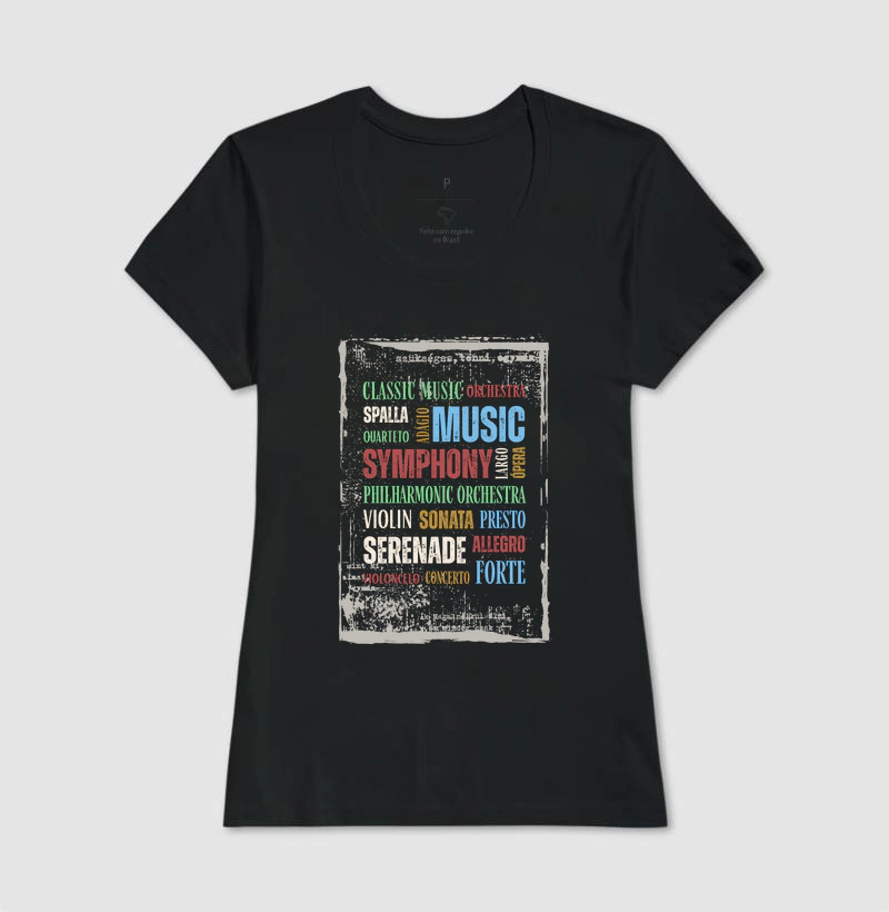 Esta estampa é um tributo visual aos elementos que compõe o nosso gosto musical e à sinfonia da nossa vida. Cada nome estampado — do Largo ao Presto — pulsa com a força de uma sinfonia eterna, ecoando em tipografias diversas e cores vibrantes, como se cada um tivesse sua própria melodia visual. Com um toque de desgaste vintage e fundo transparente, essa arte parece ter sido resgatada de um cartaz antigo pendurado nos bastidores de um teatro europeu. É história viva, design com alma, e música que se veste. Nossas camisetas são de excelência em algodão brasileiro, ideais para todos os climas. Todas as cores são 100% algodão; exceto cinzas: 88% algodão e 12% poliéster.